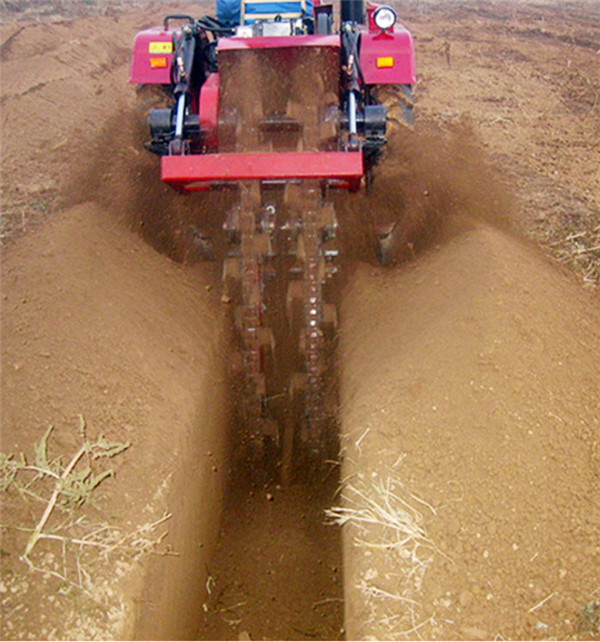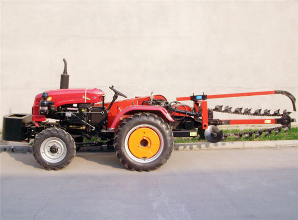 配套機型為各種15-35馬力單缸拖拉機頭,采用大駕托起式, 雙排開溝寬度40cm-50cm,深度50cm-100cm。開溝速度100m-300m/h(也可用于單排開溝)。 拖拉機頭前方可配套回填機,回填速度500m-